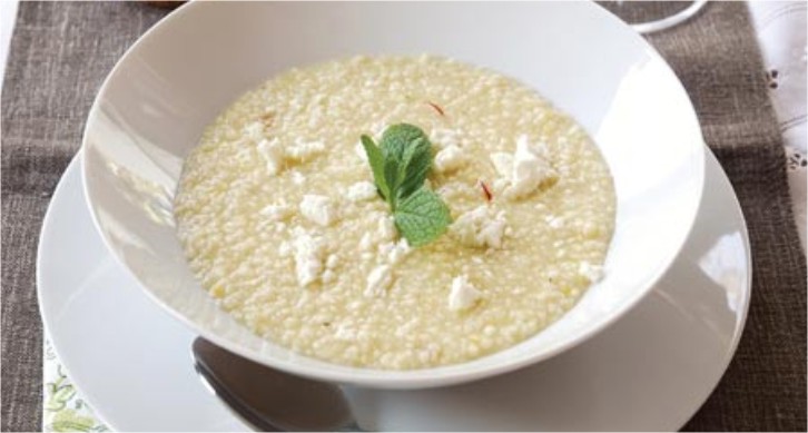 γλυκός τραχανάς με κρόκο Κοζάνης και φέτα